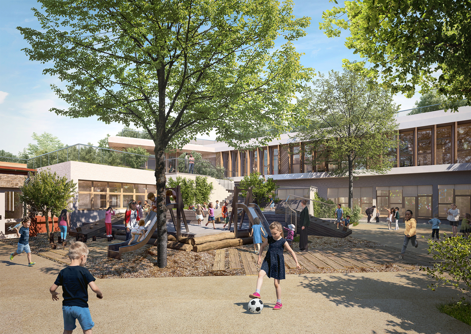 Le projet comprend la réhabilitation de 2000m² ainsi qu'une extension de 3800m² pour augmenter la capacité d'accueil de l'école et prévoit :